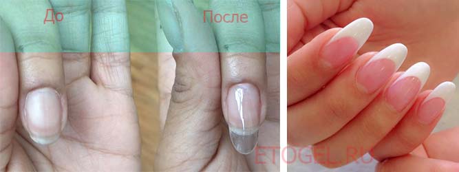 - Использование гелевого клея на каждом ногте для наращивания ногтей в зависимости от размера и формы.