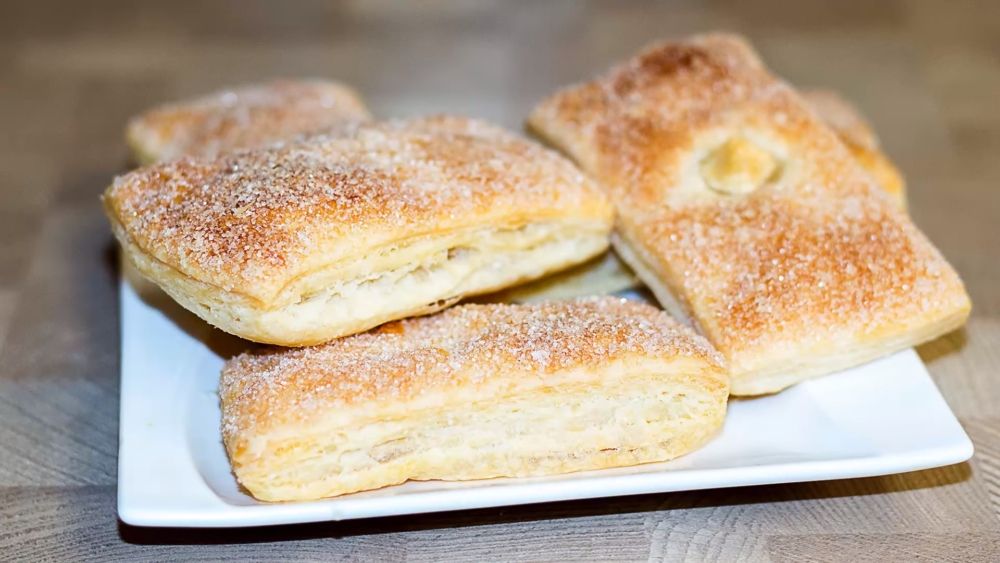 Гладкая сливочно-сырная начинка придает пикантный вкус чизкейка этим десертам из слоеного теста. Изюминка датского сливочного сыра, текстура почти как слоеные крема со сладким фруктовым вкусом. Это, безусловно, станет одним из моих любимых легких десертов из слоеного теста со сливочным сыром.