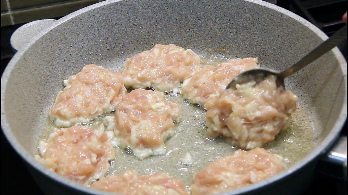 - Ложкой выкладывайте котлеты на разогретую сковороду с маслом.