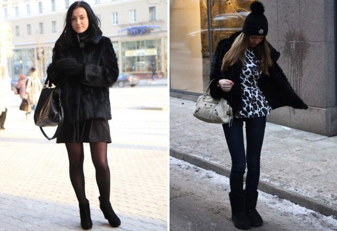 Модельеры не рекомендуют сочетать норковую шубу с уггами. Такой образ будет выглядеть несбалансированно и неуместно.