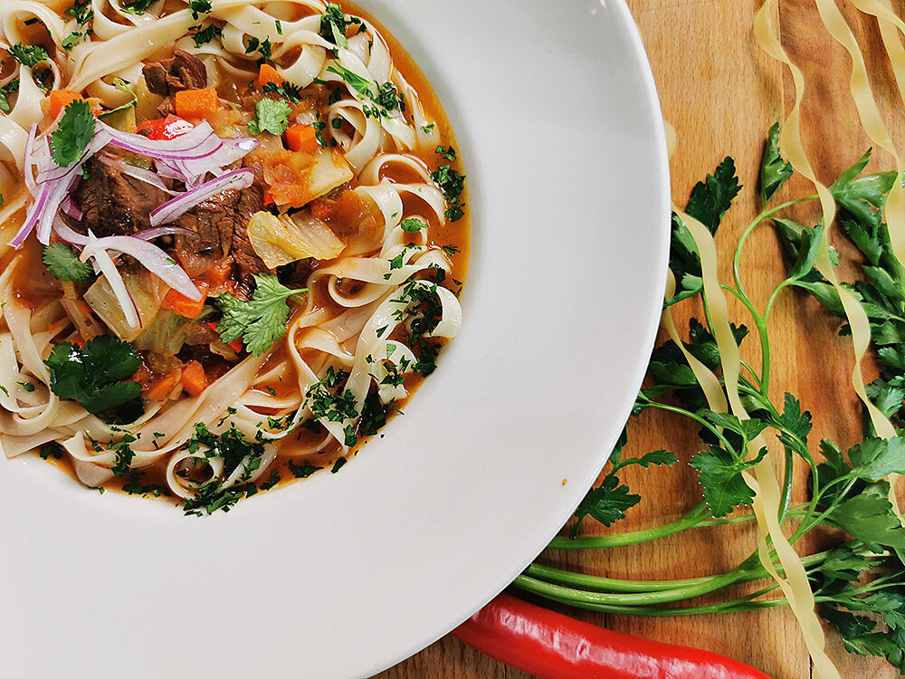 Этот лагман содержит меньше жиров и калорий, но при этом остается очень вкусным и питательным.