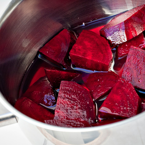 Варка делает свеклу мягкой, погружая овощ в горячую воду и варя до мягкости. Вы можете заметить, что цвет красной свеклы просачивается в жидкость для варки. В некоторых методах предлагается оставить нетронутыми не менее 2 дюймов стебля и добавить в воду уксус, чтобы этого не произошло.