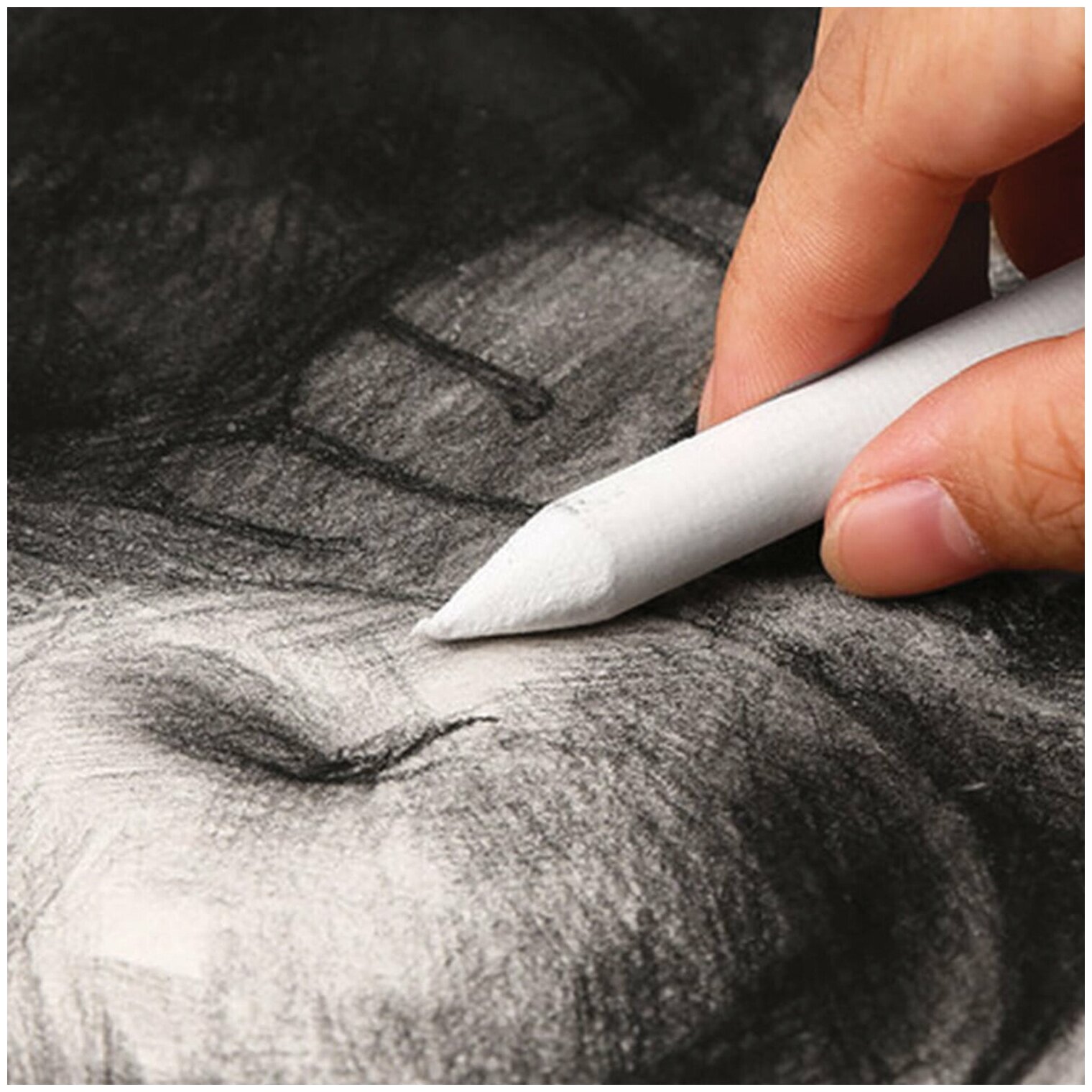 Позволяет добиться мягких переходов и объема в карандашном рисунке. Хорошо сочетается с штриховкой.