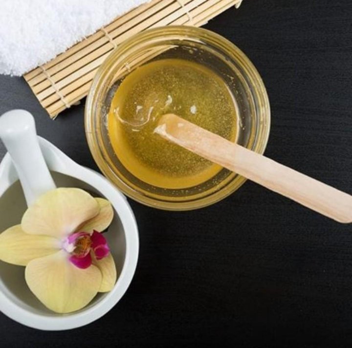 flüssige zuckerpaste zur haarentfernung in einer weufstroyblüsen mit pfing.