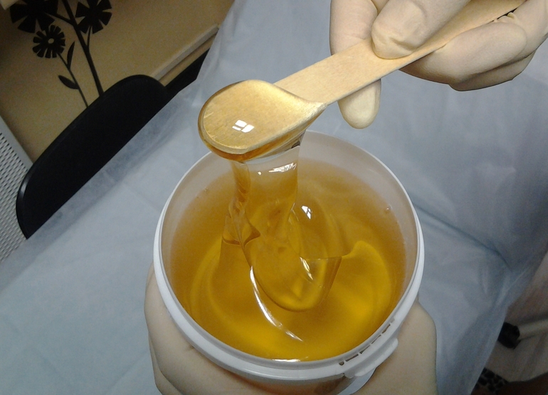 Flussigzuckerwachsabstrich mit spachtel — удаление волос с помощью шугаринга фото и фотоFlussigzuckerwachsabstrich mit Spachtel