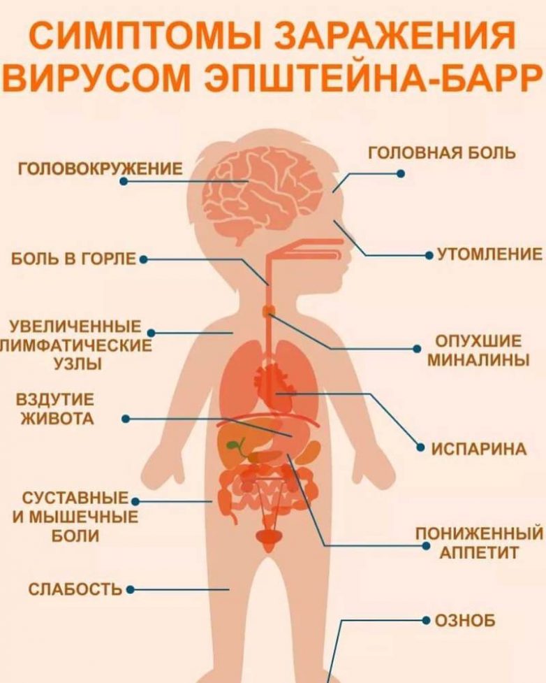 Симптомы обычно проявляются через 2-20 дней после заражения и длятся 1-2 недели. Далее вирус переходит в латентную стадию.