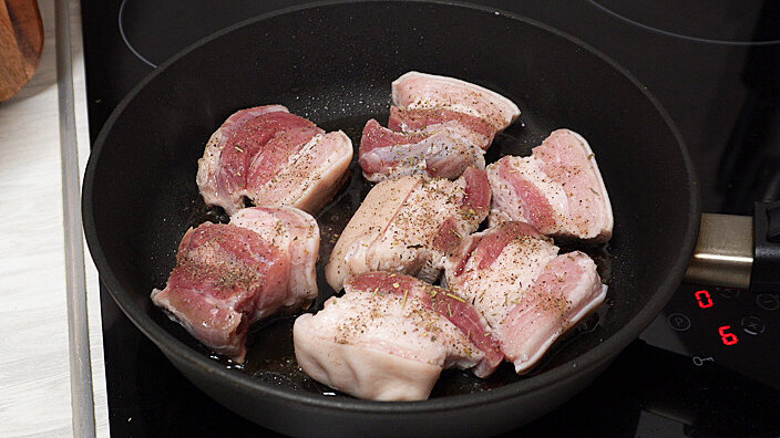 Маринование не обязательно, но помогает сделать мясо более нежным и сочным. Достаточно замариновать свинину на 30-60 минут перед жаркой.