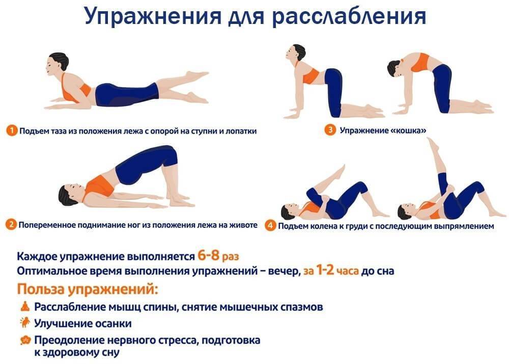 Дыхание животом, также известное как диафрагмальное дыхание, является одним из самых простых способов расслабиться. Добровольный контроль над дыханием может дать сигнал всему телу расслабиться. При дыхании животом вы глубоко вдыхаете через нос, позволяя животу расширяться, и выдыхаете через рот. Как только вы научитесь дышать таким образом, вы сможете часто использовать этот навык для расслабления. - Йога. По данным Национального центра комплементарного и интегративного здоровья, практики для разума и тела, такие как йога, могут помочь снять стресс, уменьшить беспокойство и улучшить общее самочувствие. Если вы новичок в йоге, вы можете начать с 10-минутного занятия восстановительной йогой.