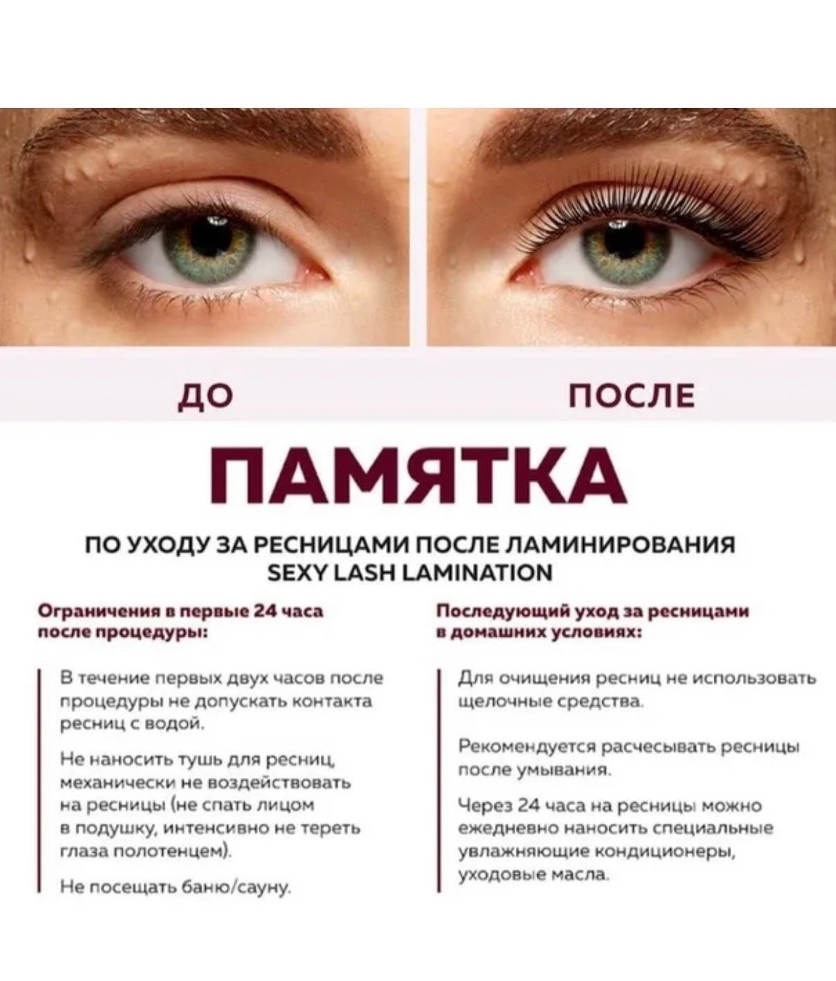 Ламинирование ресниц — отличный способ подчеркнуть естественную красоту глаз без использования накладных ресниц. При правильном уходе результат процедуры будет радовать вас долгое время.