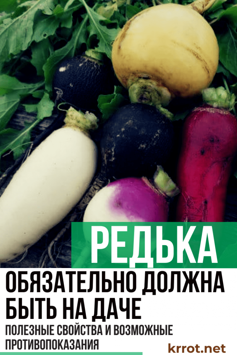 А еще зеленая редька богата витамином РР, калием и натрием. Зеленую редьку противопоказано употреблять людям с заболеваниями желудочно-кишечного тракта, почек и печени, также она не рекомендуют при беременности, так как в редьке содержатся эфирные масла, которые повышают тонус матки.