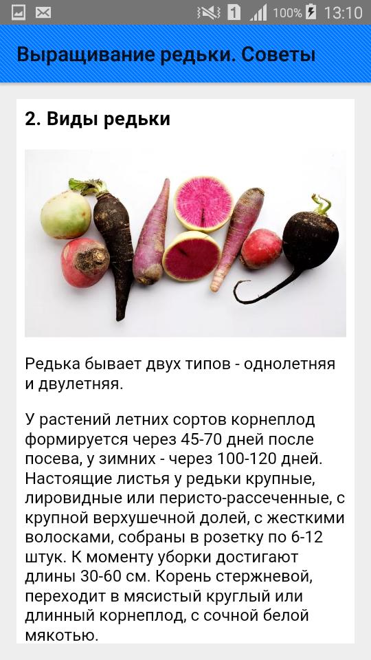 Существует множество различных видов редьки: черная редька, дайкон, хрен, арбузная редька и круглая редька. Редис можно приготовить разными способами: его можно мариновать, использовать в бутербродах, жарить как часть овощной смеси или добавлять в запеканки для острого хруста. Один из самых популярных способов есть редис — нарезать его ломтиками и съесть в салате.