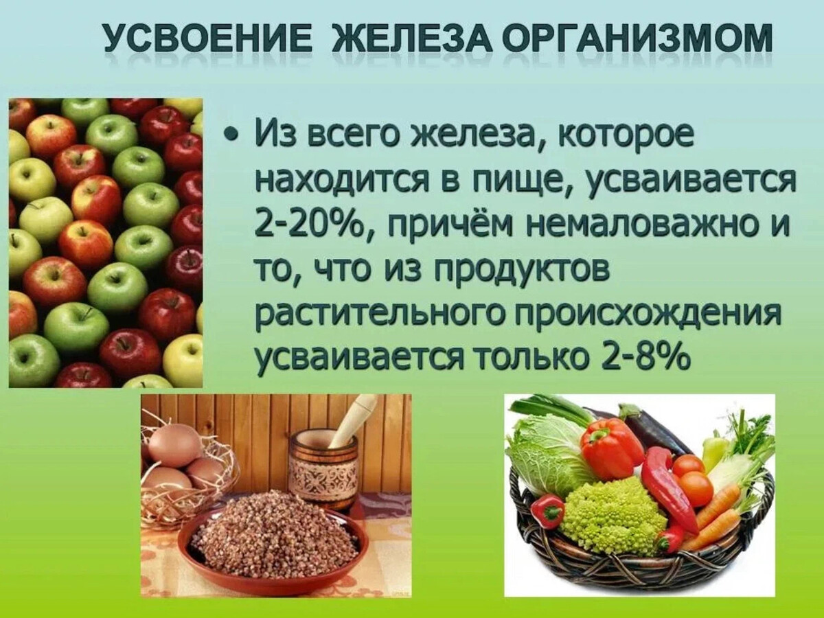 На усвоение железа из пищи и препаратов влияют различные факторы: