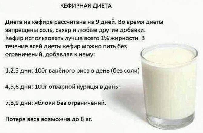 Для похудения диета хороша, но после неё вес весьма быстро набирается вновь, поэтому могу рекомендовать разгрузочные дни.Для себя нашла оптимальным делать такие дни один раз в неделю. Лучше выбрать выходной день. Для этого понадобится около полутора-двух литров кефира невысокой жирности или обезжиренного (я беру две бутылки кефирного Биобаланса 1 % или 2,5 % жирности, т.к. калории все-таки должны быть) и один литр питьевой воды. Воду я иногда заменяю отваром шиповника. Кефир разделить на пять приемов, а воду пить, когда захочется. Переносится такой день достаточно легко. Что касается веса – уходит 1 килограмм за месяц, но если прекратить еженедельные разгрузочные дни, вес возвращается назад. Такие разгрузочные дни хорошо ещё делать после праздничных застолий. Способ приготовления кефира #8212; одно из основных отличий кефира от йогурта. В традиционном молочном кефире используются зерна кефира и цельное коровье молоко #8212; хотя теперь вы можете найти его из козьего, овечьего и кокосового молока, а также из заменителей риса и соевого молока.