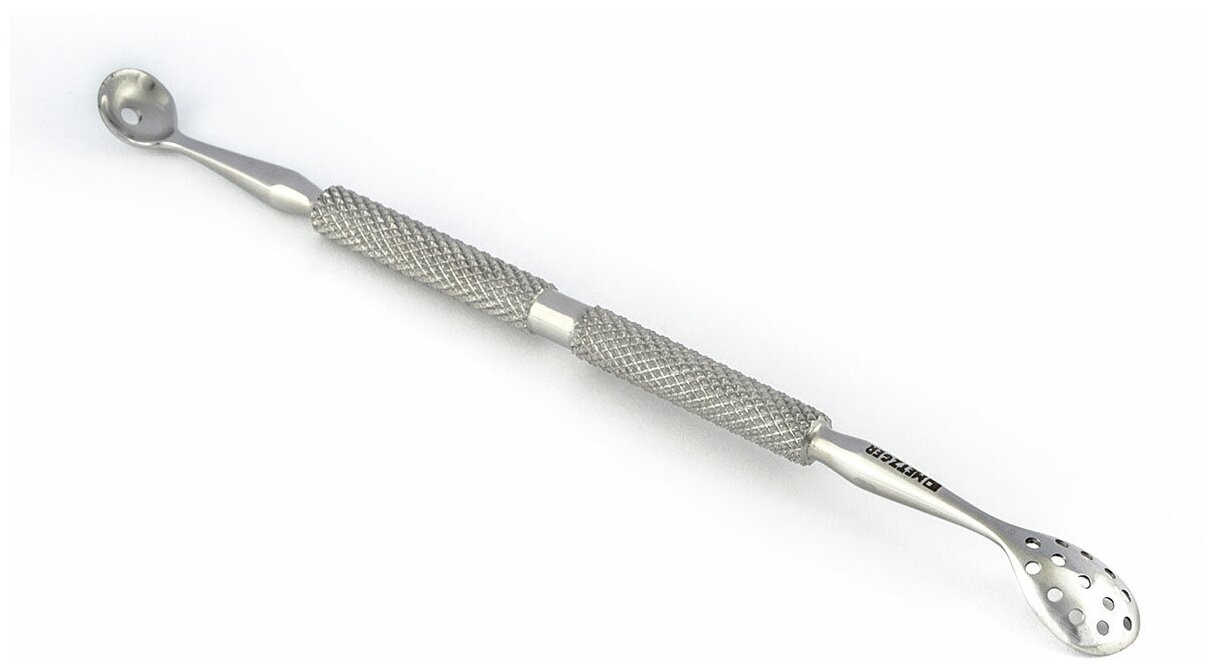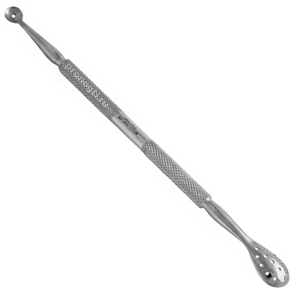 Косметическая ложка — это специальный инструмент для механической чистки кожи лица. Она представляет собой небольшую металлическую ложку с отверстием в центре и заостренными краями. С помощью этого приспособления проводится глубокое очищение пор, удаление комедонов, сальных пробок и других загрязнений с поверхности кожи.