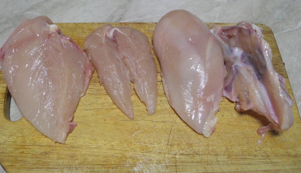 В среднем они составляют половину размера полной груди. Куриная вырезка шире с одного конца и сужается к нижней части мяса.
