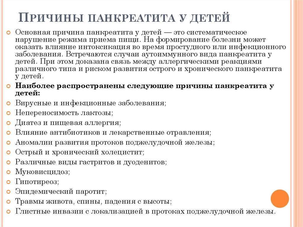 Основные факторы, провоцирующие развитие панкреатита у детей: