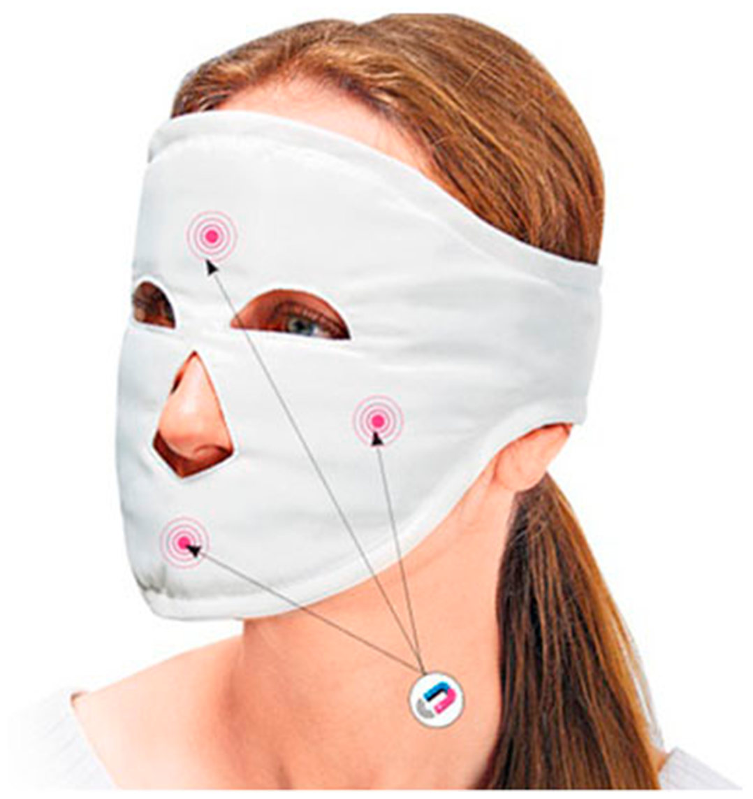 Омолаживающая тканевая магнитная МАСКА МОЛОДОСТИ для лица и век от морщин на лбу, вокруг глаз, подтяжка массаж усталости, головной боли мигрени, отеков, улучшения памяти, кровообращения