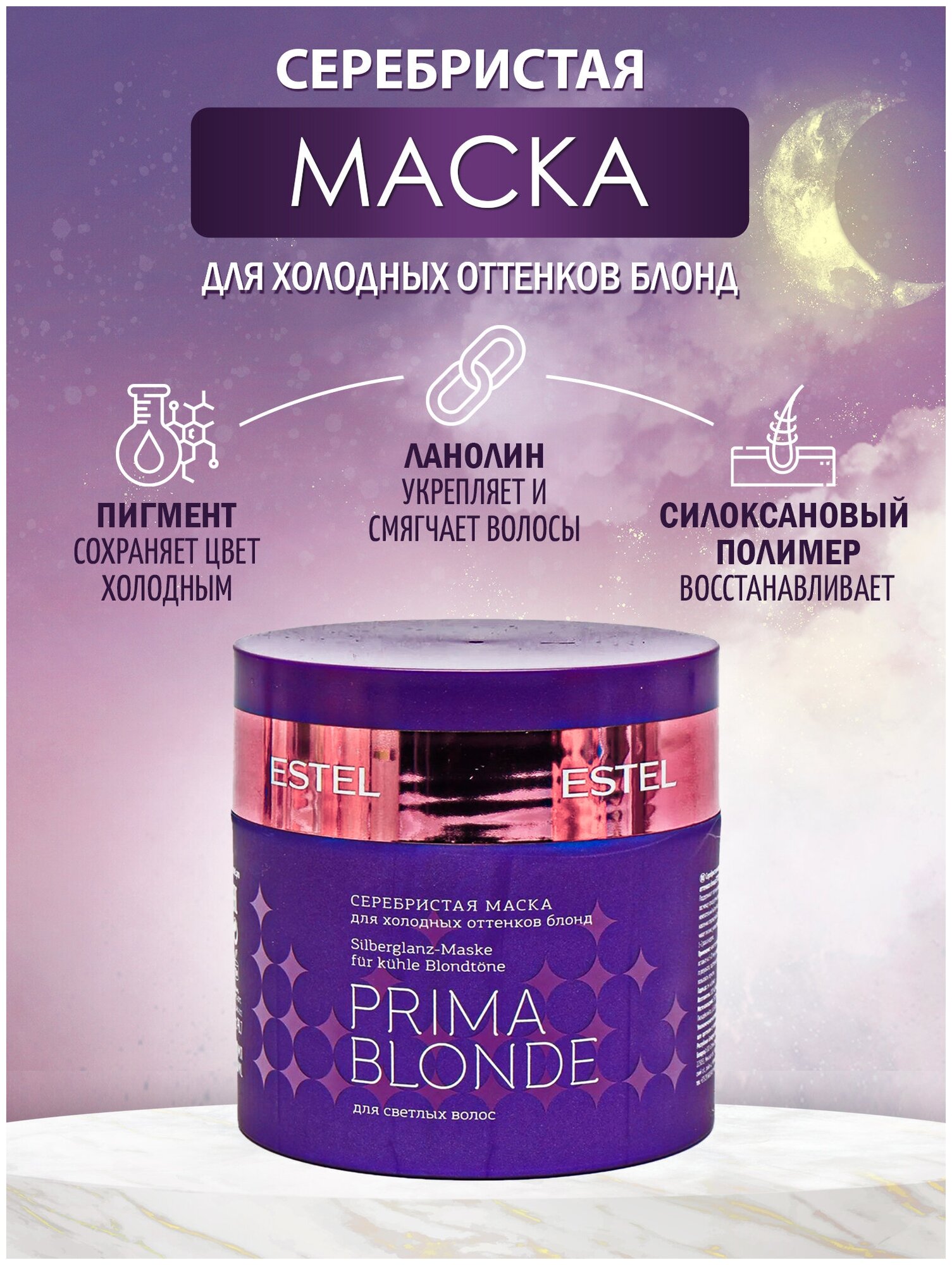 Что такое серебристая маска для блондинок. Как она помогает поддерживать холодные оттенки. Каковы основные преимущества использования серебристой маски для волос. Какие активные компоненты входят в состав маски Estel Professional Prima Blonde.
