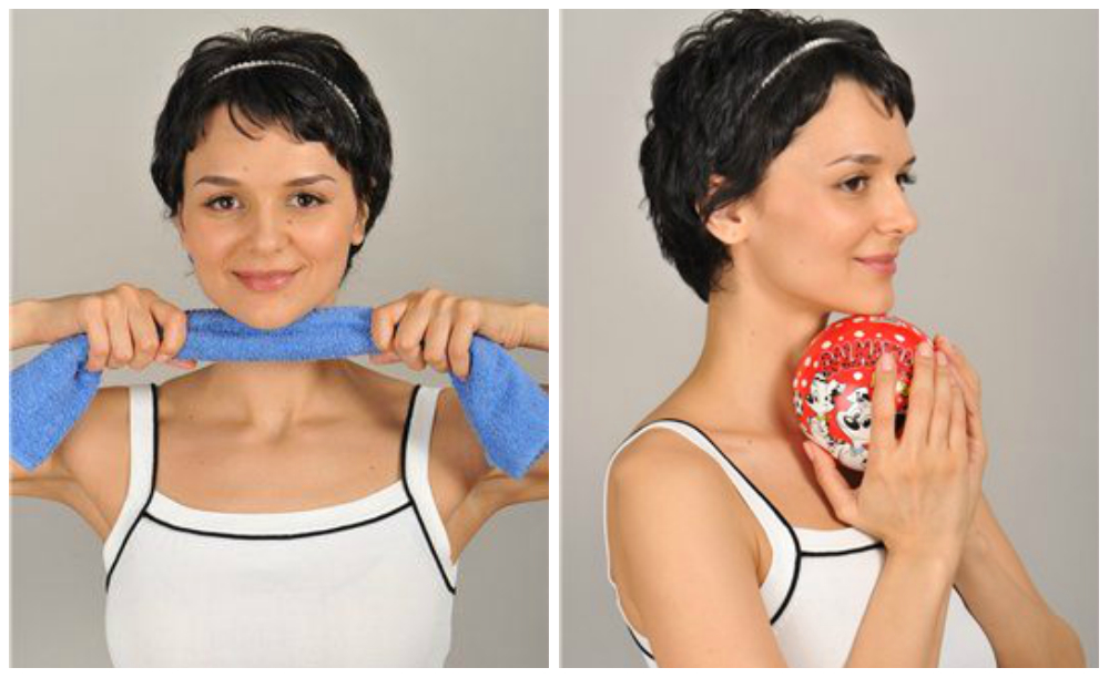 Регулярное выполнение специальных упражнений помогает укрепить мышцы и подтянуть кожу. Например: