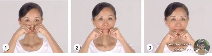 Основное воздействие идет на лимфатические узлы для улучшения отхода лимфы. Нужные нам точки находятся в висках, у крыльев носа, под нижней губой по центру, возле ушных раковин и наверху переносицы (между бровями). Воздействие на каждую такую точку идет с умеренной силой и длится несколько секунд. Это единственный массаж, где не нужно использовать масло или крем, так как нет скольжения по коже.