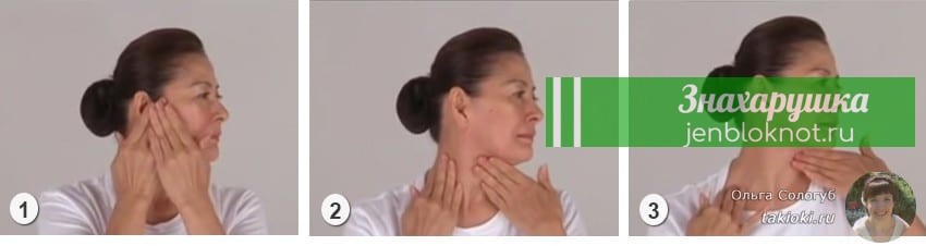 - Переместите пальцы по бокам подбородка, надавливая ими с легким, но сильным давлением наружу и вверх, скользя по челюстной кости к ушам. Повторите несколько раз.