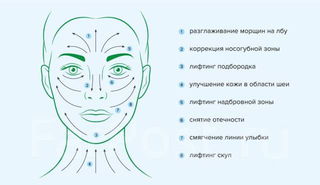 Массажные линии лица — это направления, по которым следует выполнять массажные движения для достижения максимального эффекта. Они проходят: