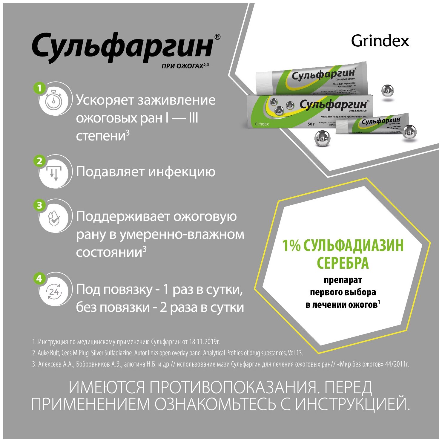 - Сульфаргин обеспечивает быстрое купирование воспалительных явлений и снижение болевого синдрома при ожогах различной степени