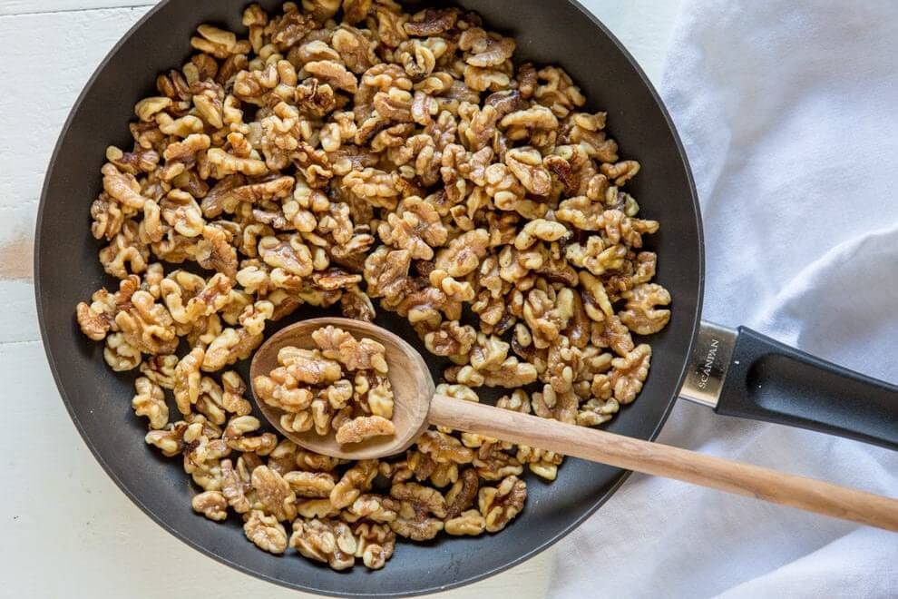 Слегка обжарьте орехи на сухой сковороде в течение 3-5 минут. Это поможет удалить лишнюю влагу и улучшить вкус. Однако при этом теряется часть полезных веществ.