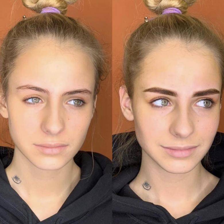 С помощью тонирования Вы просто окрашиваете сами волосы, а не окружающую кожу, как во время микроблейдинга или затенения. В отличие от микронидлинга, при котором на Вашей коже татуируются крошечные волоски, тонирование бровей больше направлено на усиление акцента на естественных бровях. В результате процедуры Вы получаете более яркие, густые и пушистые брови.