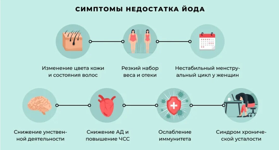 Дефицит йода может проявляться различными симптомами. Вот 9 основных признаков, которые могут указывать на недостаток этого важного микроэлемента: