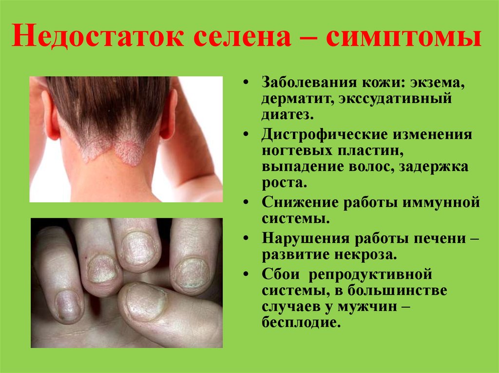 ЦинкДефицит кожи Симптомы: дерматит, ломкие ногти, медленное заживление.