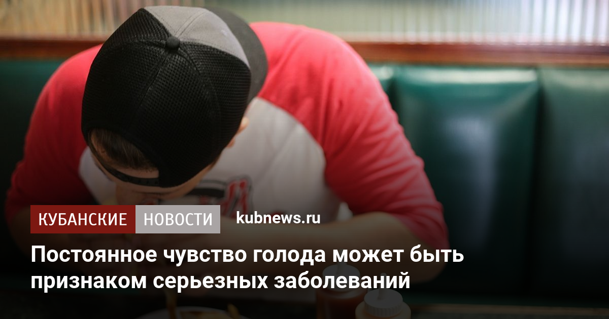 Постоянный голод может быть симптомом диабета 2 типа. Без лечения диабет приводит к тому, что глюкоза остается в крови, а не попадает в клетки, которые используют глюкозу в качестве источника энергии. Это может вызвать у человека чувство усталости и голода.
