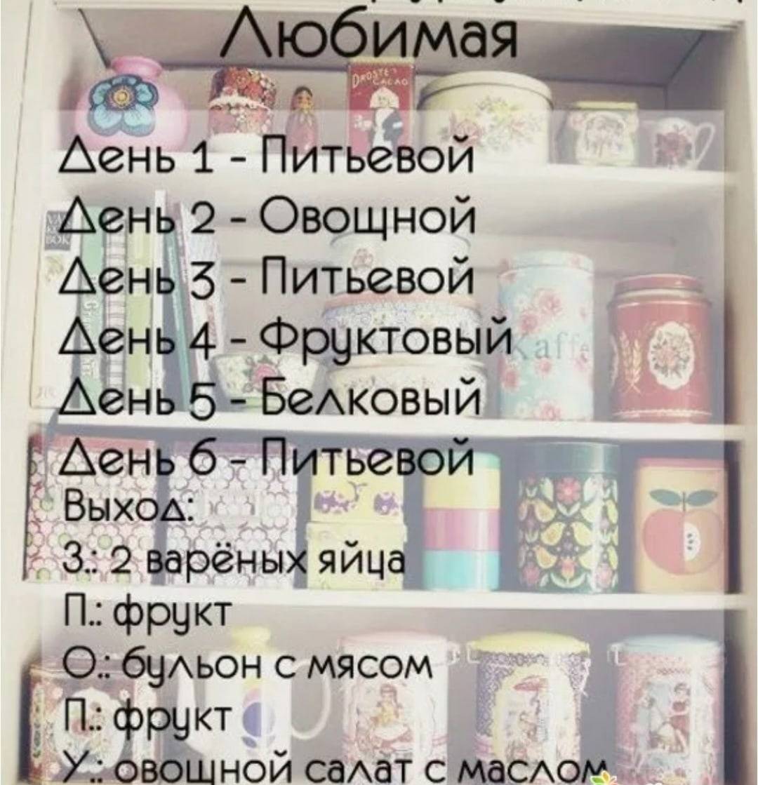 Меню питьевой диеты на 7 дней