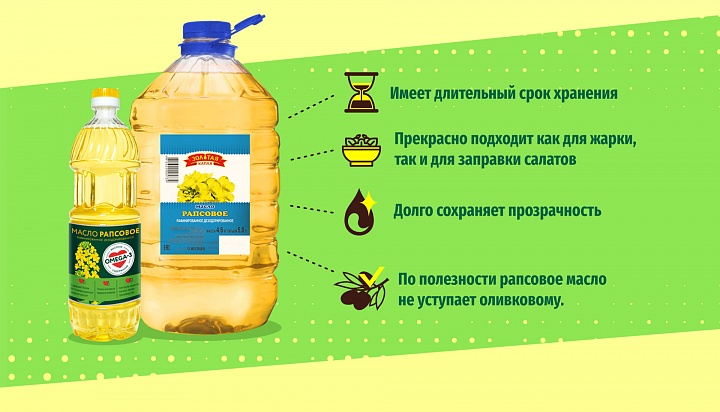 Рапсовое масло широко используется для приготовления пищи благодаря своим свойствам: