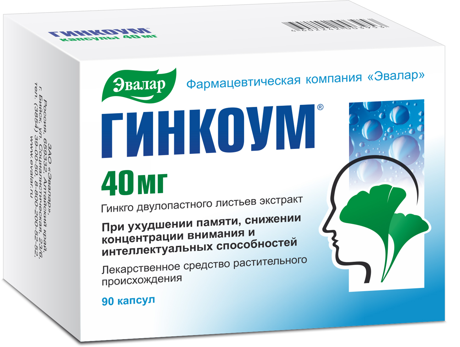- Экстракт гинкго билоба — улучшает мозговое кровообращение и память