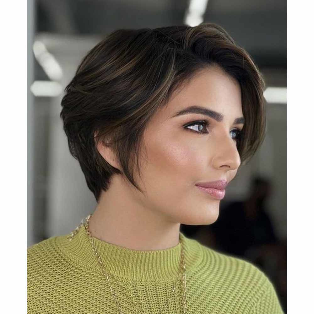 Короткая стрижка с объемным верхом. Волосы на макушке остаются длиннее, чем по бокам и сзади. Такая пикси подходит для тонких волос, придавая им визуальный объем.