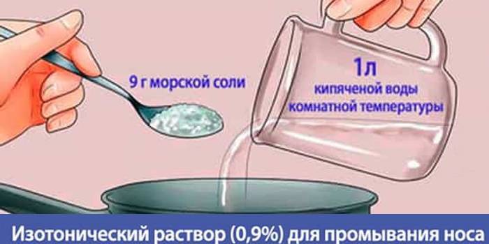 Солевые растворы часто поставляются предварительно упакованными с устройствами для промывания носа или могут быть изготовлены в домашних условиях. Американская академия аллергии, астмы и иммунологии рекомендует следующий рецепт полоскания носа солевым раствором: