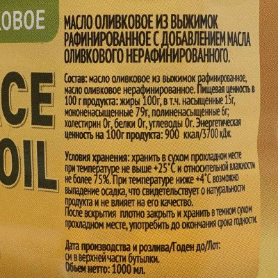 Чистое оливковое масло представляет собой смесь оливкового масла первого холодного отжима и переработанных масел.