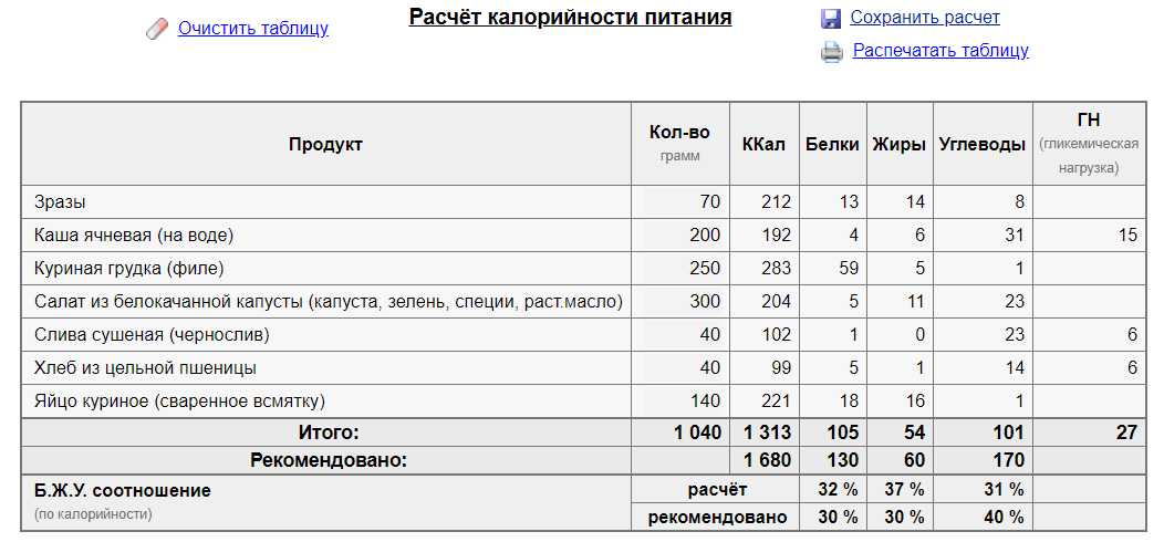 Ведущая задача производимых расчетов – обеспечить организм необходимым количеством энергии на весь день.
