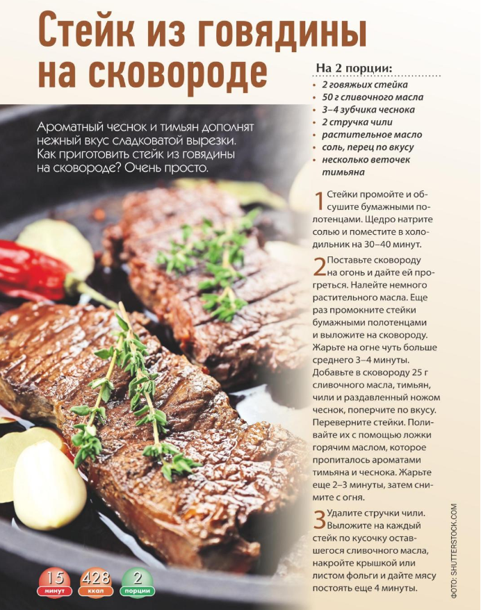 Стейк — классическое блюдо из говядины, которое готовится на гриле или сковороде. Для приготовления лучше всего подходят следующие части туши: