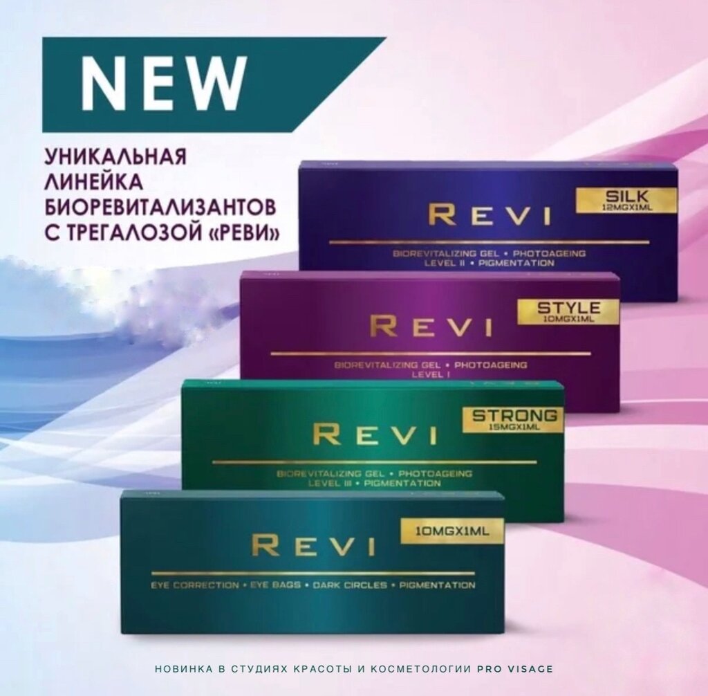 Биоревитализация Revi — это инновационная процедура омоложения кожи с использованием препаратов на основе гиалуроновой кислоты российского производства. Серия средств Revi была создана с применением отечественных и японских разработок на германском оборудовании.