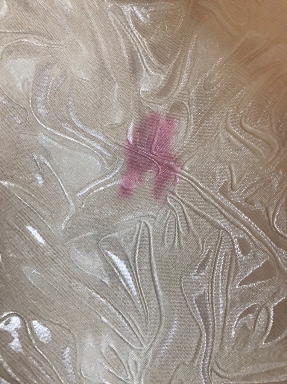 Сегодня я обнаружила розовые пятна. Не по всему коридору, а участками. Обои содрала. Запах жуткий — вероятно, плесени. Розовые пятна присутствуют и на другой стороне обоев, и на стенах».