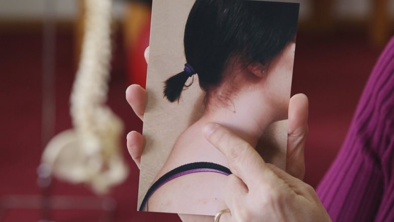 При пальпации шеи можно обнаружить болезненные уплотнения и узелки в мягких тканях. В запущенных случаях образуется заметная шишка в области 7-го шейного позвонка.