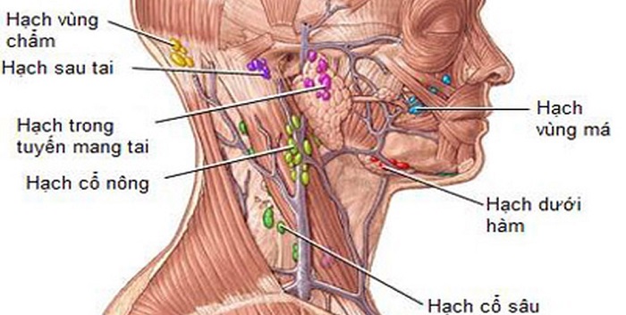 Лимфатические железы расположены под кожей, в том числе по одной с каждой стороны шеи, граничащей с линией подбородка.