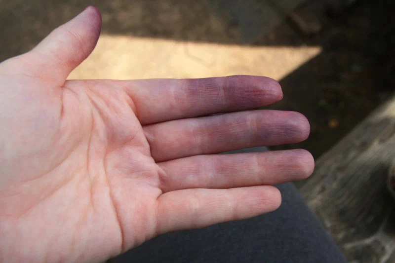 Богатая кислородом кровь имеет темно-красный цвет и обуславливает нормальный цвет вашей кожи. Недостаточно насыщенная кислородом кровь голубее, и ваша кожа выглядит голубовато-фиолетовой.