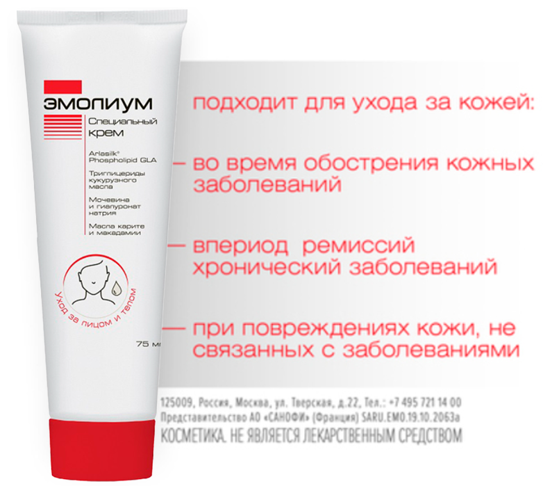 Специальный крем Эмолиум подходит для ухода за кожей: