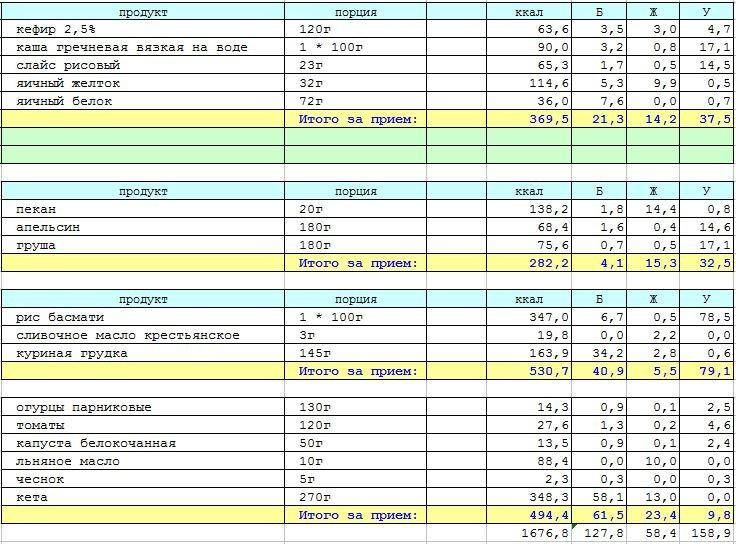 Это примерное меню можно корректировать под свои вкусовые предпочтения и режим дня.