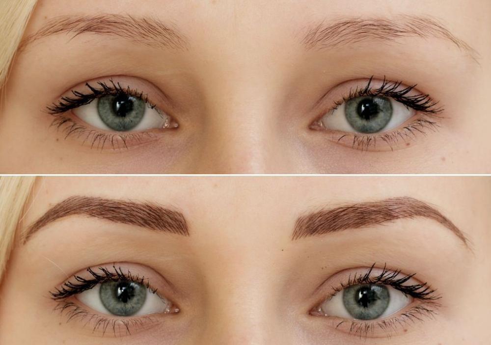 Татуаж бровей до и после