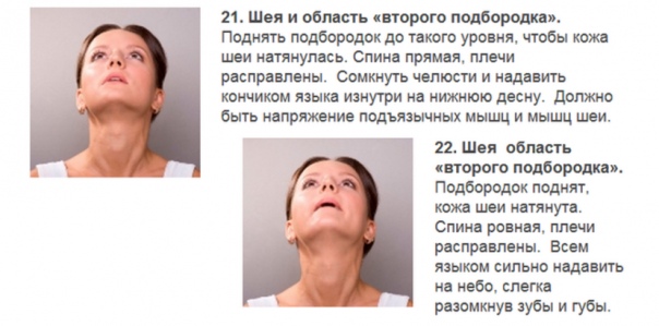 Чтобы убрать провисание кожи на шее, выполняйте такие упражнения: